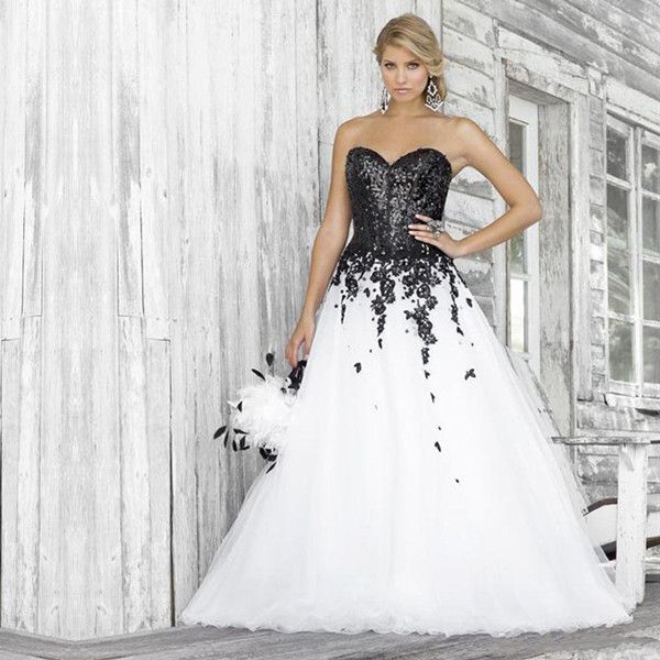 Discount 2019 Black White Wedding Dresses A Line Sweetheart Lace Applique Bridal Gowns Sweep Train Tulle Vintage Wedding Gowns Chinese Wedding Dresses