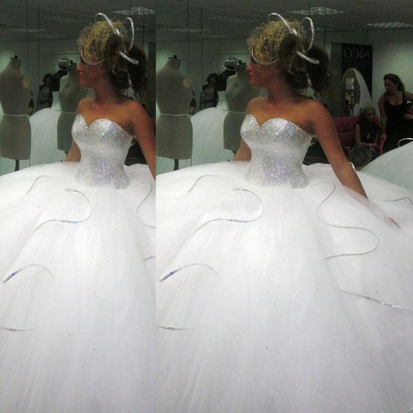 Big Poofy Sweetheart White Tulle Bridal Ball Gown Diamond Crystal