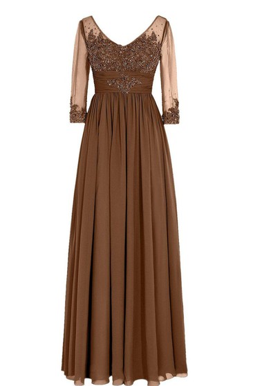 2020 Charming A Line Side Slit Chiffon Light Brown V Neck Beaded Prom Dress