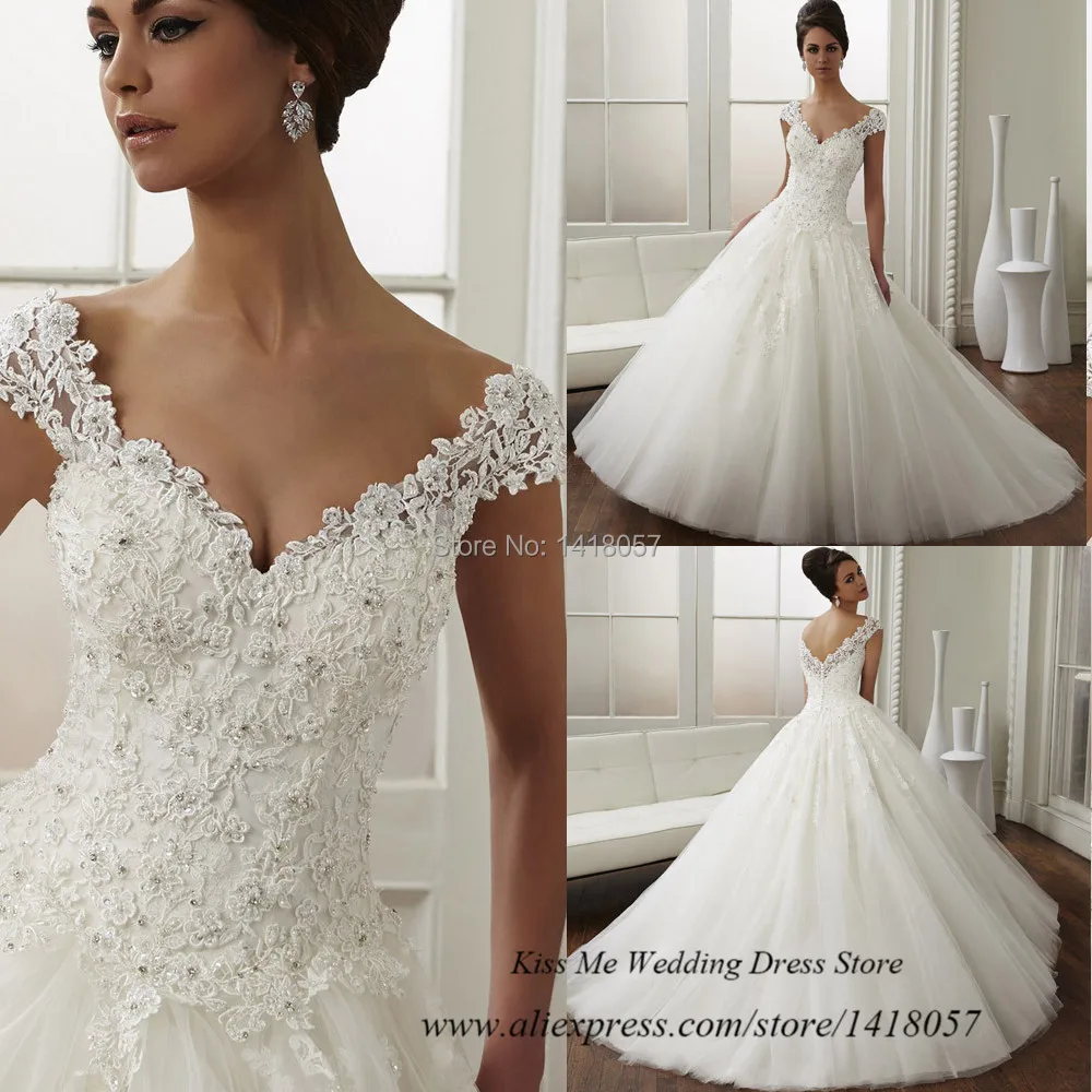 Brand White Wedding Dresses Lace Beaded Ball Gown Wedding Gowns