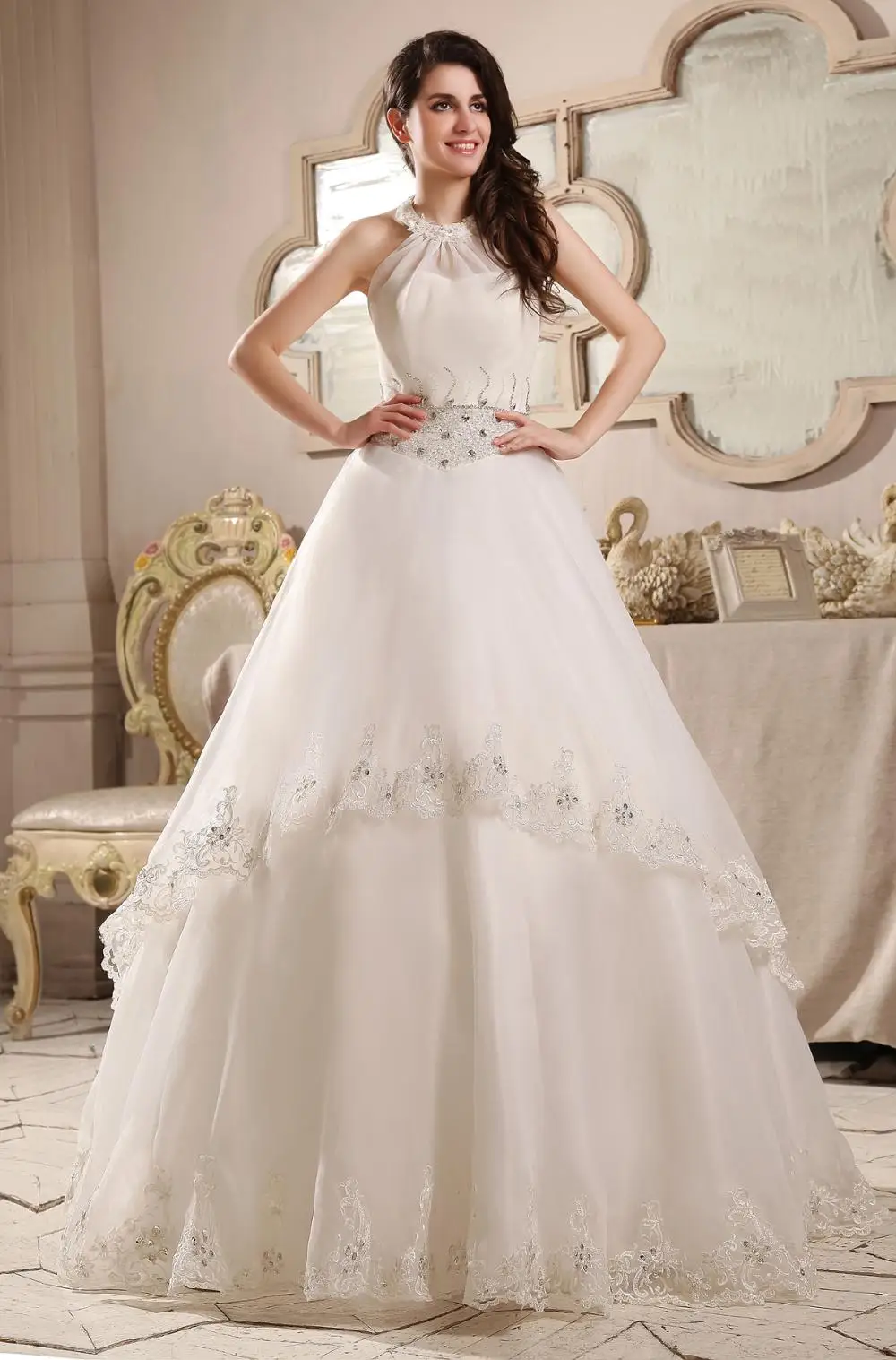 A-line Halter Sweep Brush Train Inexpensive Great Wedding Dresses #SD2406 - US 2 / AS Picture